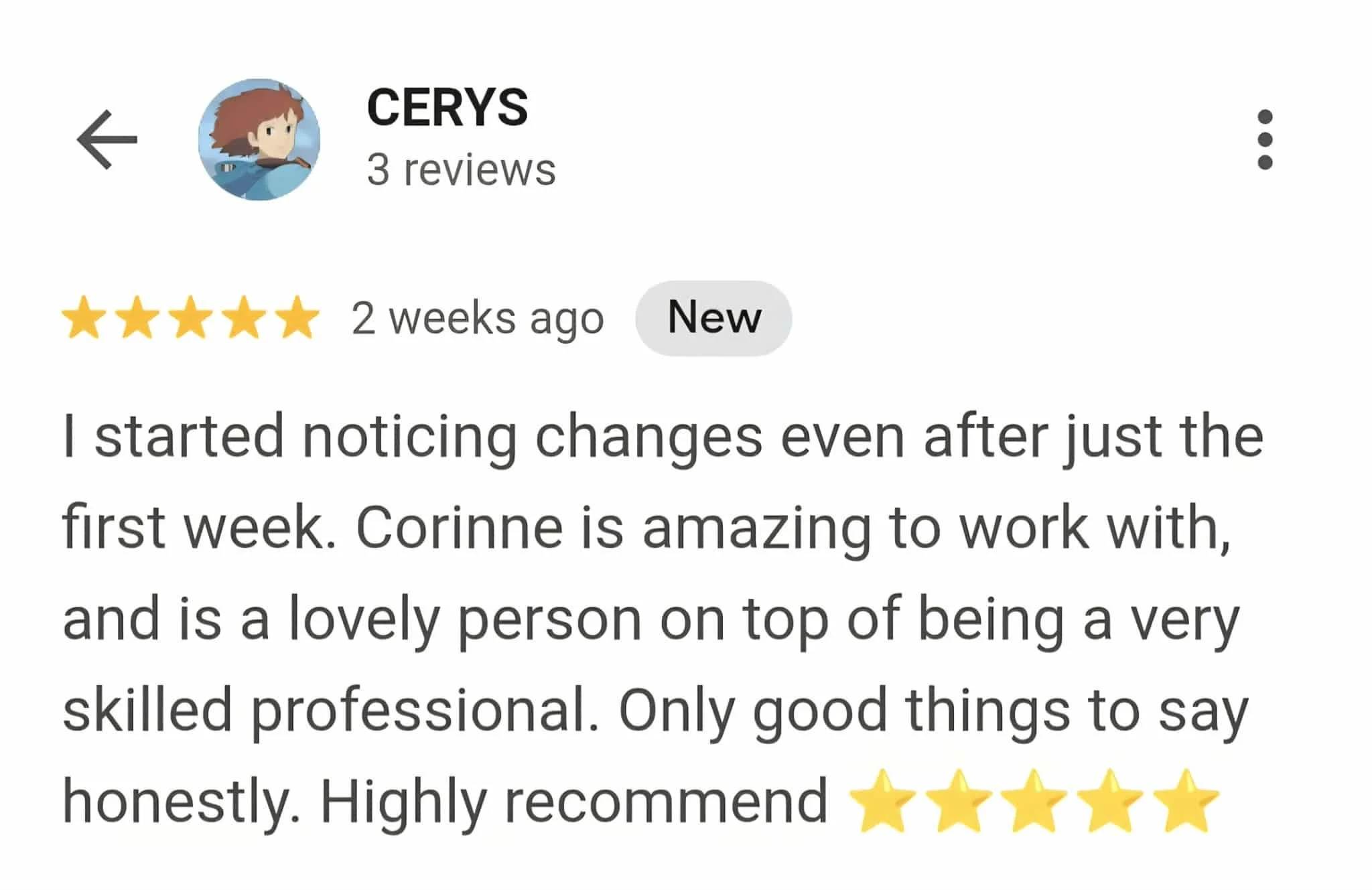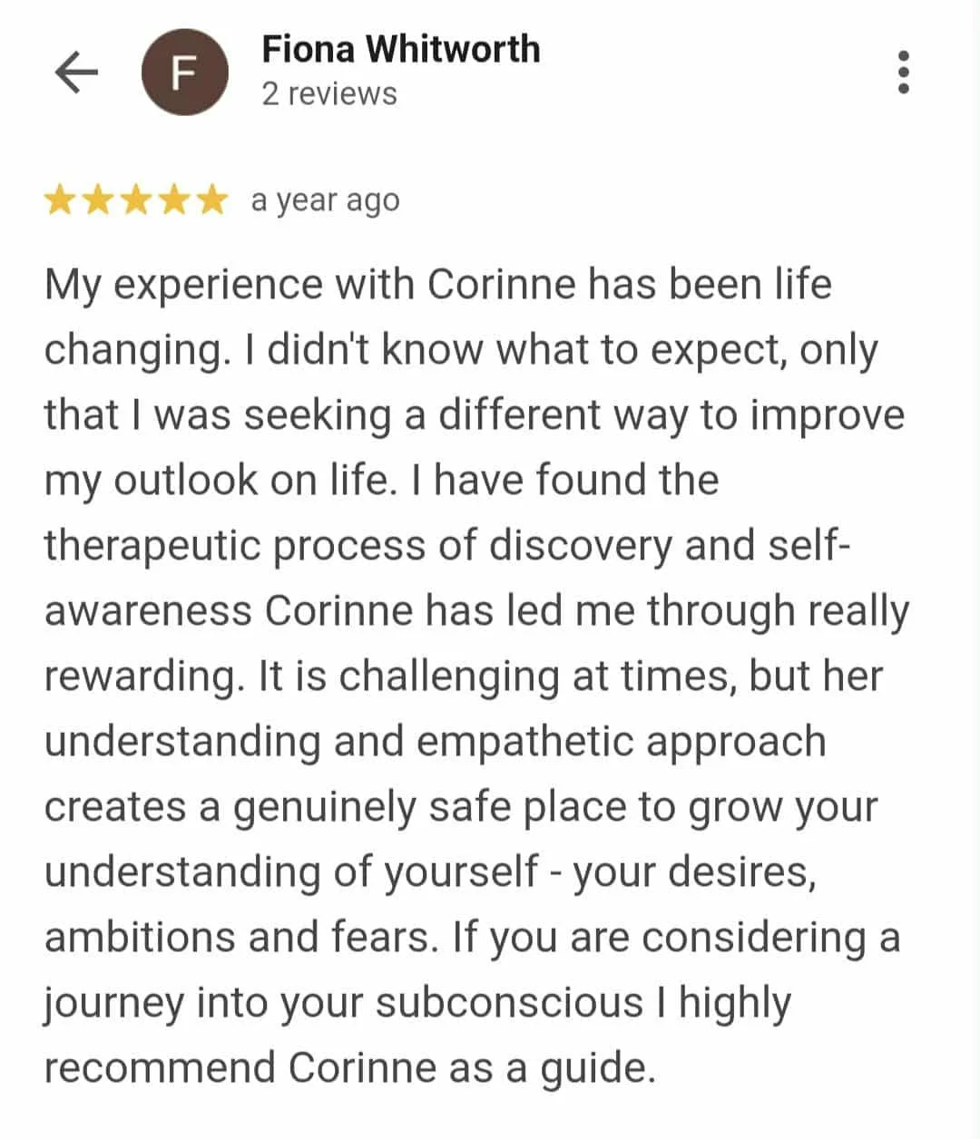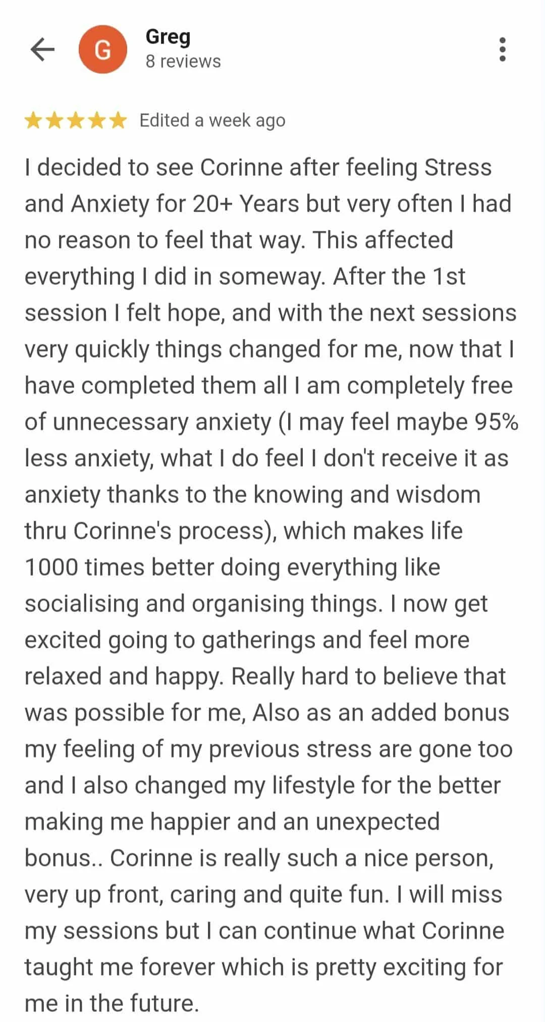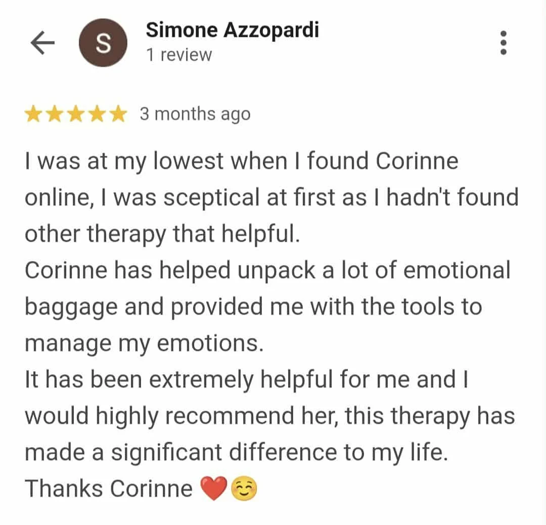 “I honestly cannot recommend Corinne more. She's just so beautiful, in her nature. She's an absolutely amazing coach. When I came to Corinne I felt like a little lost boy, and I just feel so congruent and in alignment with where I'm wanting to go to in the future.”